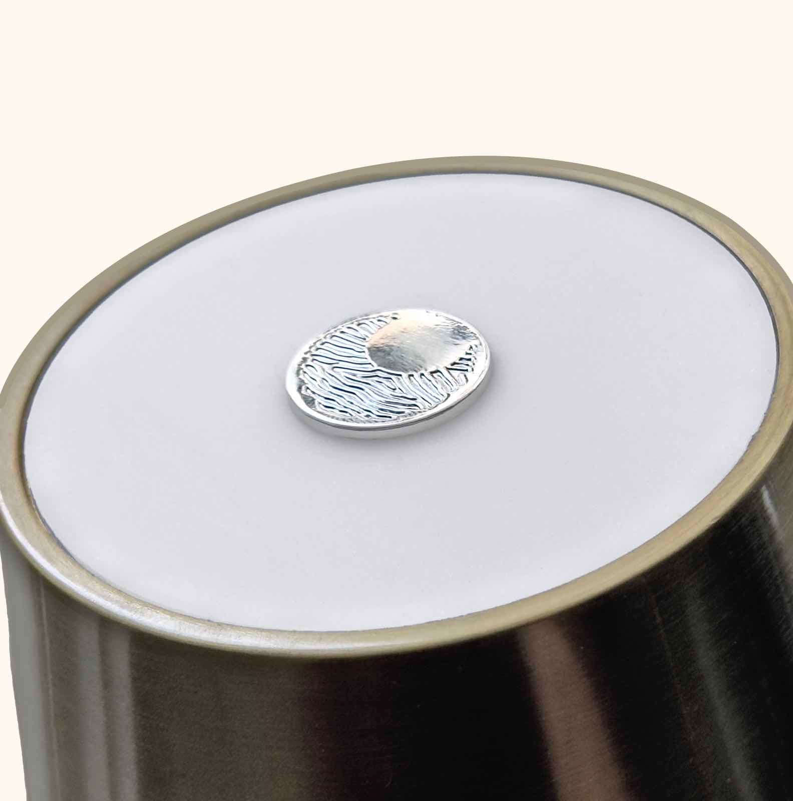Touch our Metal logo button to turn on and off the lamp. A touch of luxury and elegance.